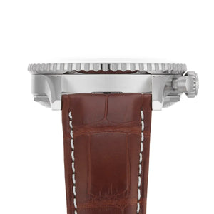 | Strap | Brown alligator leather, deployant clasp |