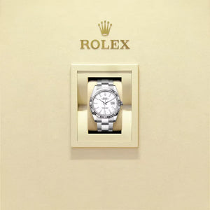 A hallmark of RL design, the fluted bezel, originally functional for waterproofing, now symbolizes timeless prestige. Rendered in 18 ct white gold, it elevates the Datejust 41âs classic appeal.