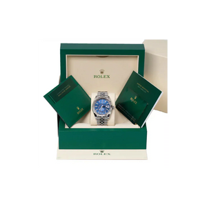 Elegant blue dial, fluted white-gold bezel, and comfortable Jubilee bracelet for refined style